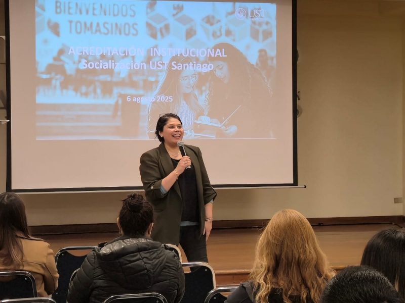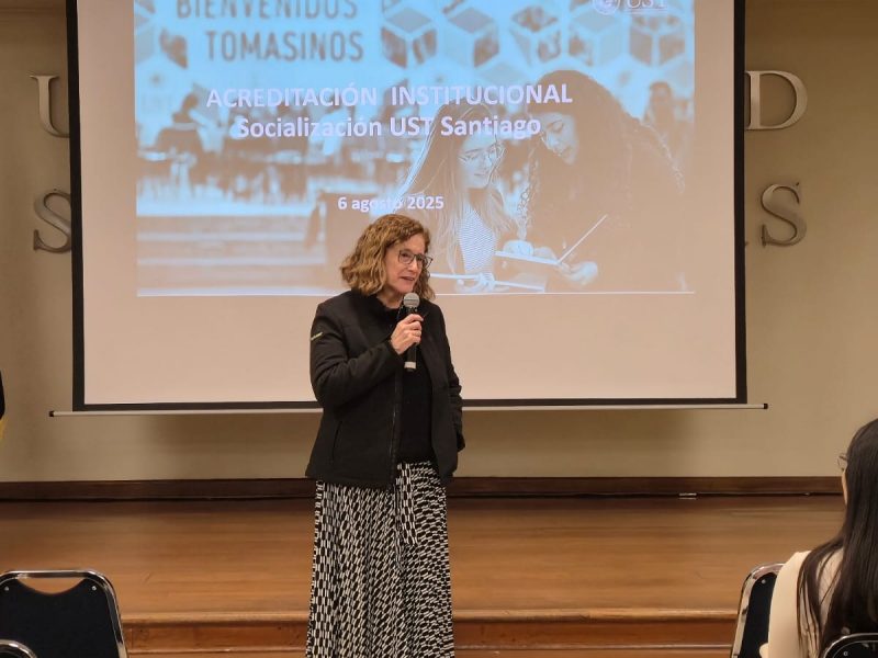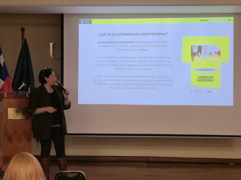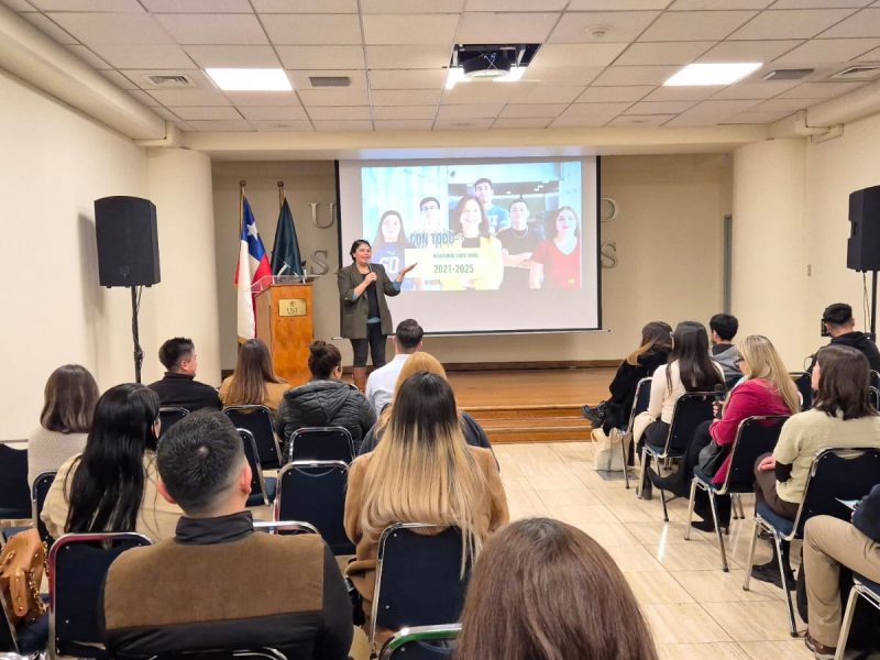 Durante su intervención, la Dra. Echeverría enfatizó que la acreditación institucional es una tarea colectiva que también involucra a los egresados, dado que son embajadores del sello UST y su experiencia profesional constituye un insumo valioso para la mejora continua.