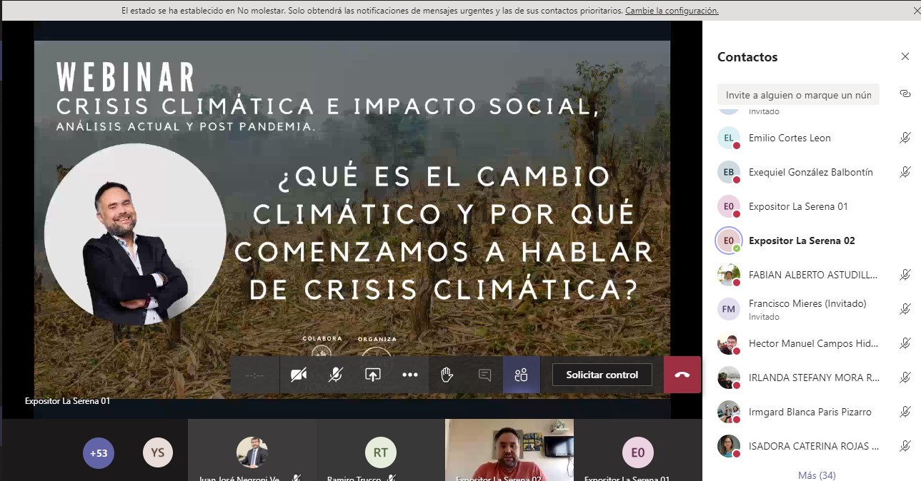 El día 9 de julio a través de la plataforma teams, se desarrolló el webinar: Crisis Climática e Impacto Social, análisis actual y post pandemia.