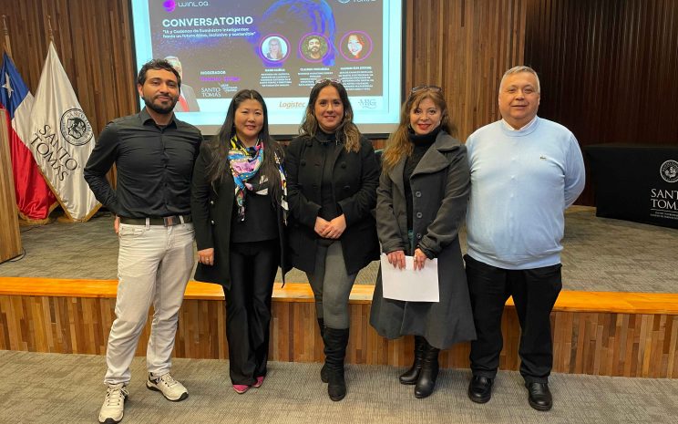 El pasado 28 de agosto, el auditorio de la sede Santo Tomás Santiago Centro recibió a estudiantes de Ingeniería y Técnico en Administración Logística para participar en el conversatorio “Cadenas de Suministro Inteligentes: Hacia un futuro ético, inclusivo y sustentable”, instancia que buscó acercar a los futuros profesionales a las transformaciones que hoy marcan el rumbo de la logística internacional.