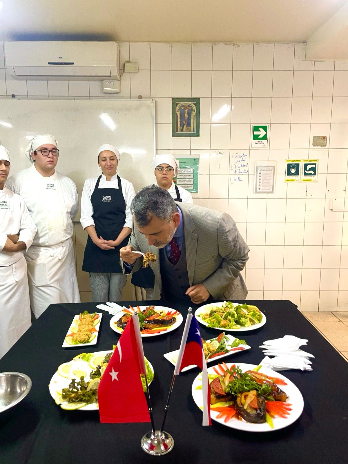 En el marco de la Semana de la Cocina Turca, cuatro estudiantes de la carrera de Gastronomía Internacional y Tradicional Chilena de la sede Santiago Centro participaron en una enriquecedora clase internacional a cargo de la chef Marcelina Flores, representante de la residencia de la Embajada de Turquía en Chile.