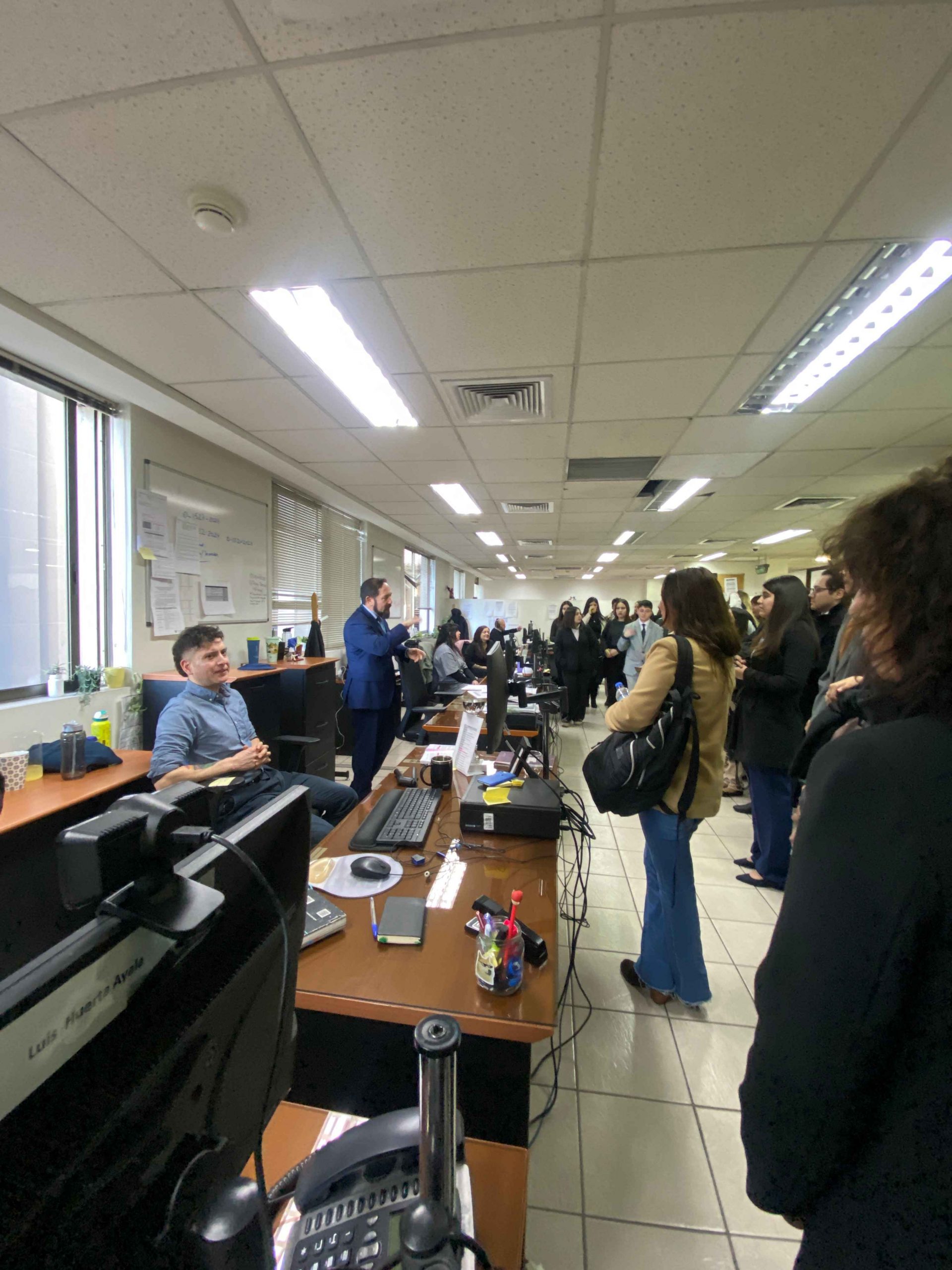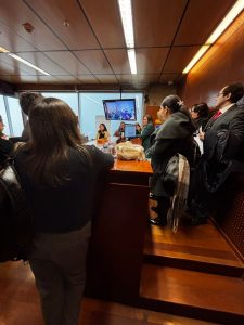 En esta primera instancia, los estudiantes participaron de una visita al 1° Juzgado de Letras del Trabajo de Santiago, donde pudieron conocer el funcionamiento sistema judicial en materia laboral. La actividad les permitió recorrer distintas áreas del tribunal y presenciar una audiencia laboral real, observando cómo se desenvuelven los profesionales del área en un entorno formal y activo.