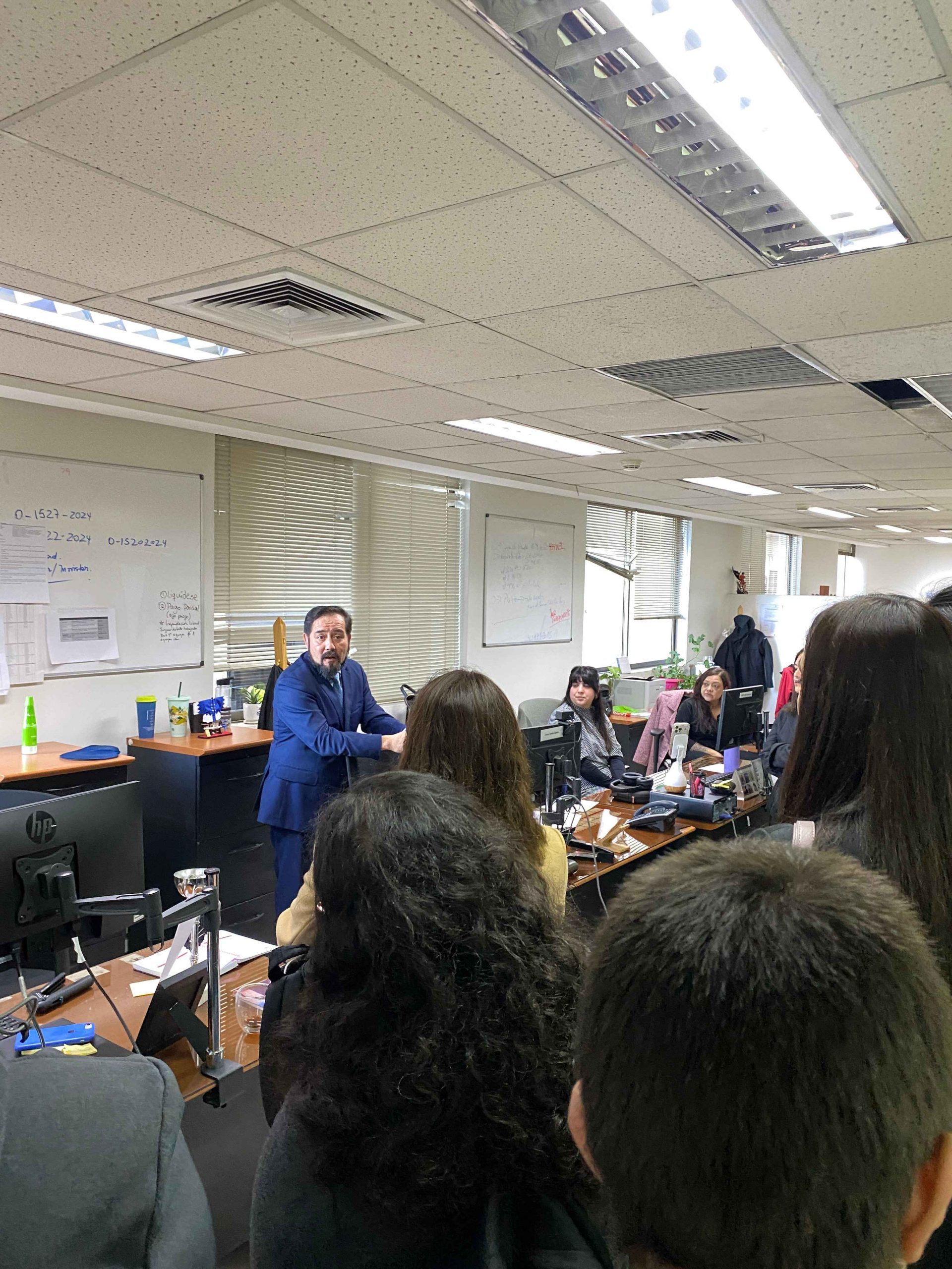 “Estamos acá en el primer juzgado de letras del trabajo y el motivo de la visita es realizar una vinculación con la comunidad y para que nuestros estudiantes puedan conocer parte del funcionamiento de los tribunales de justicia, sobre todo en el área especializada que es el derecho laboral”, señaló Reyes.