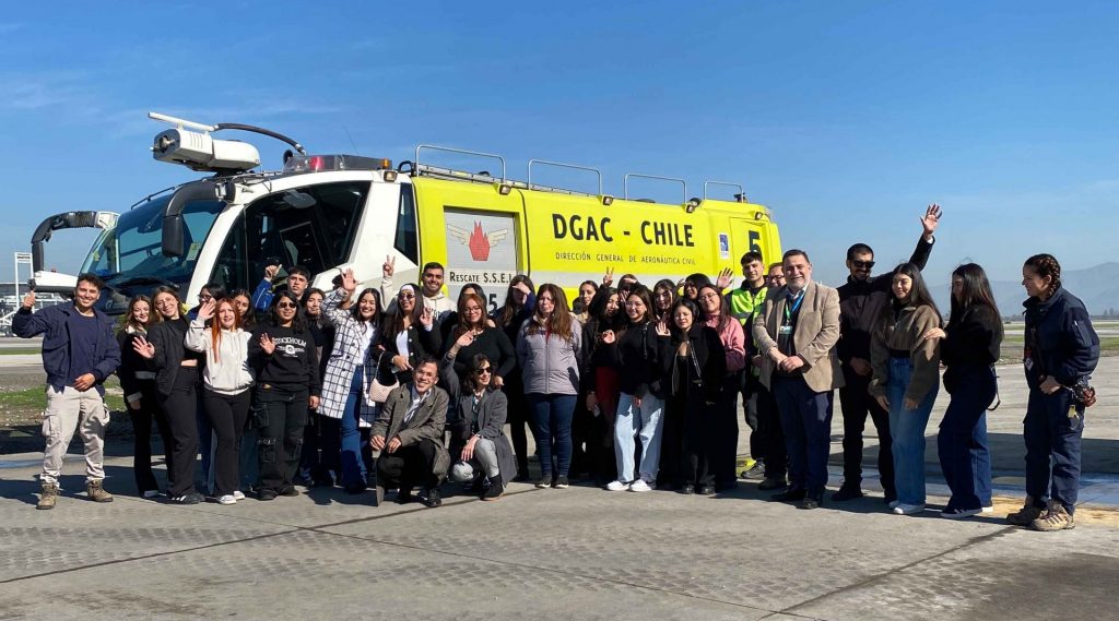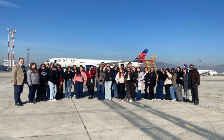 “Esta visita al Aeropuerto Internacional Arturo Merino Benítez es una instancia clave para que nuestros estudiantes comprendan en terreno cómo funciona la operación aeroportuaria», señaló el jefe de carreras del área de turismo, Marcelo Riffo.