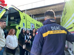 Uno de los momentos más destacados de la visita fue el ingreso a las instalaciones del Servicio de Seguridad, Salvamento y Extinción de Incendios en Aeronaves (SSEI) del aeropuerto, una unidad fundamental para la seguridad operativa en tierra. Allí, los estudiantes conocieron el funcionamiento del cuartel de bomberos aeronáuticos, la tecnología que utilizan y el rol clave que cumplen ante situaciones de emergencia.