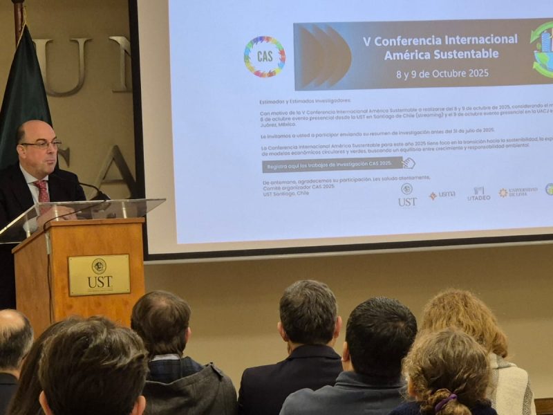 El pasado jueves 28 de agosto la Universidad Santo Tomás (UST) lanza la 5ta Conferencia Internacional América Sustentable (VCIAS), un evento híbrido que se realizará el próximo 8 y 9 de octubre en Santiago, Chile desde la sede UST Santiago, y en Ciudad Juárez, México desde la UACJ. En colaboración, por académicos e investigadores de la Universidad Santo Tomás – UST (Chile), de la Universidad Santa María La Antigua -USMA (Panamá), de la Universidad de Bogotá Jorge Tadeo Lozano – UTADEO (Colombia), Universidad de Lima – ULIMA (Perú), Universidad Autónoma de Ciudad Juárez – UACJ (México). Esta conferencia busca difundir conocimiento científico sobre sustentabilidad, responsabilidad social e internacionalización, formando profesionales con una mirada integral.
