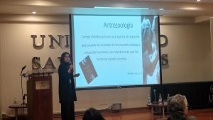 Dentro de las presentaciones se encontró una de Carmen Luz Barrios, Decana de la Facultad de Medicina Veterinaria y Recursos Naturales, sobre las mordeduras de perros: “Mordeduras caninas: una visión antrozoológica”.