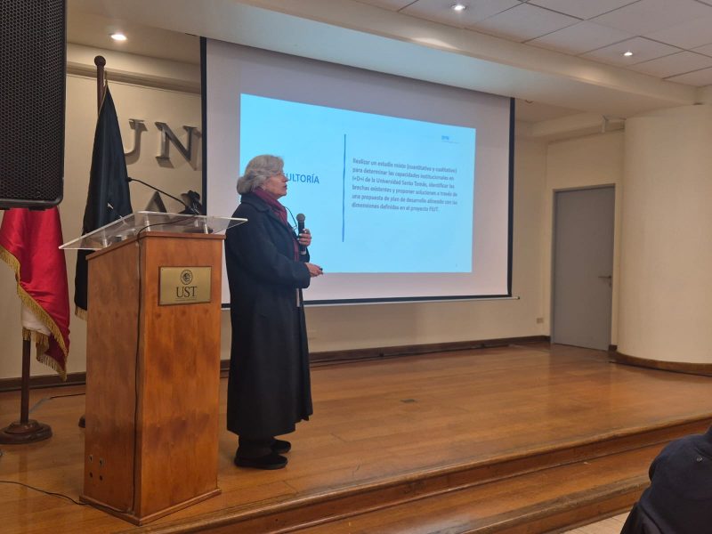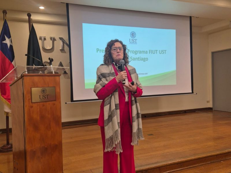 El jueves 24 de julio, la Universidad Santo Tomás, sede Santiago, vivió una jornada clave para el fortalecimiento de la investigación y la innovación. En el marco del Programa FIUT – Santo Tomás, la rectora Dra. Elsa Echeverría Olivares encabezó el Desayuno FIUT, instancia que reunió a académicos, investigadores, invitados de instituciones públicas y privadas, y representantes de la Consultora SIN, quienes guiaron la conversación en torno a los desafíos y proyecciones del proyecto.
