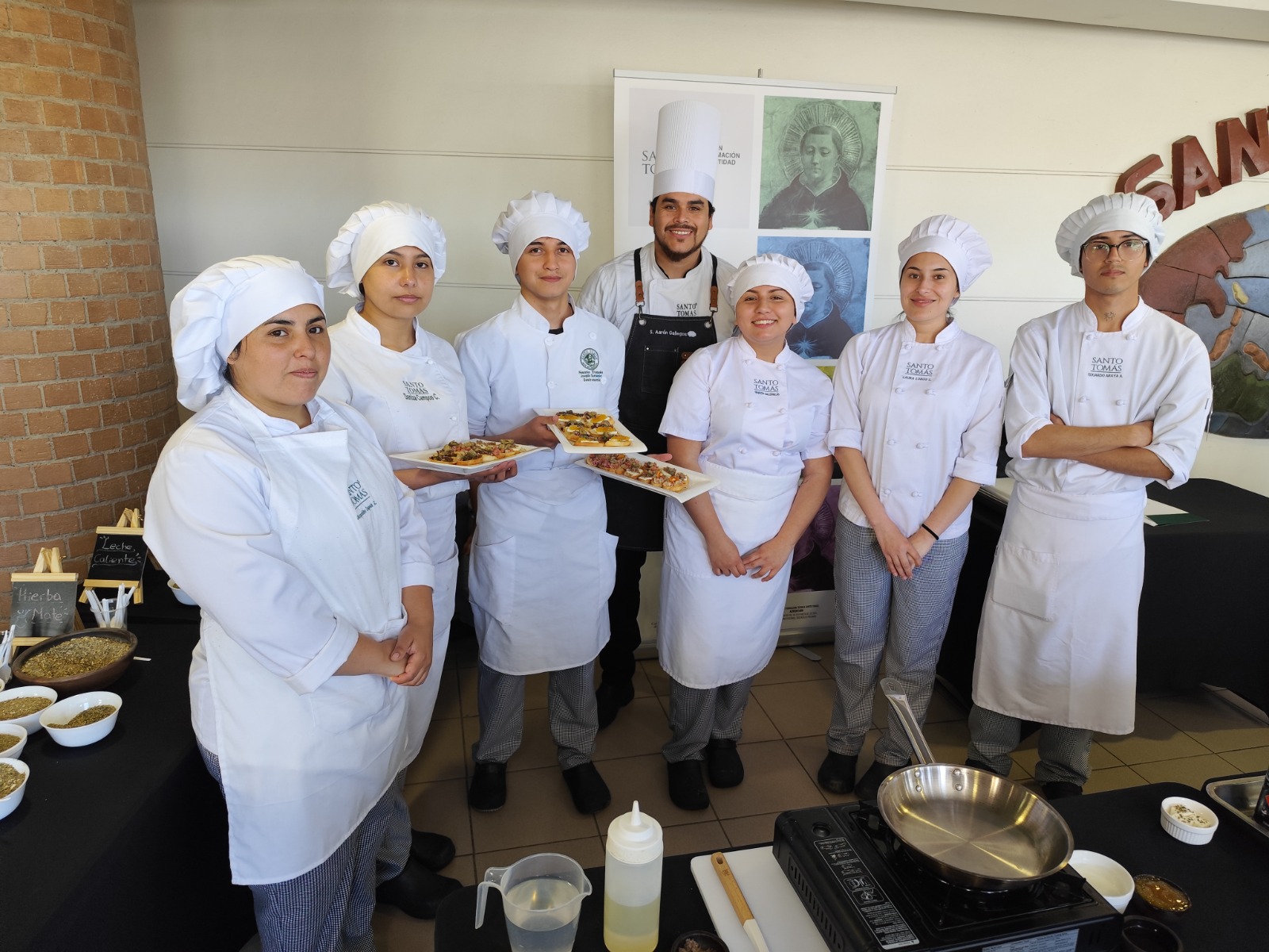 Churrascas, sopaipillas, sopaipillas pasadas, charqui, crostini con queso de cabra fundido y mermelada de papaya con miel, fueron solo parte de las preparaciones creadas por los estudiantes de segundo año de Gastronomía durante el evento. “En conjunto con el área de Formación e Identidad participamos en una mateada enmarcada en el Tema Sello, que es una instancia en la que queremos profundizar uno de nuestros valores institucionales y que este año está inspirado en una gran mujer chilena del siglo XX que es premio Nobel, Gabriela Mistral”, destacó la directora de la carrea de Gastronomía, Valeria Vidal.