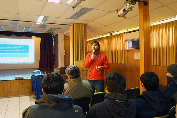 “La necesidad está creciendo y tenemos que preocuparnos y ocuparnos del tema”, aseguró el también instructor CISCO a los alumnos del Liceo Comercial Diego Portales de Rancagua. Explicó que ante esta realidad surgen problemas de seguridad y para ellos se generan soluciones fragmentadas, es decir, parches: “No existe ninguna técnica que permita asegurar la inviolabilidad de un sistema”.