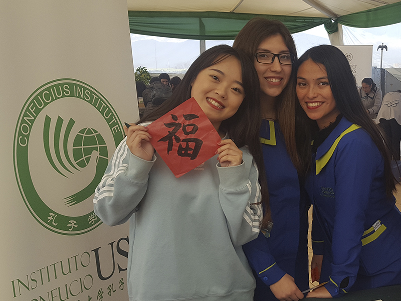 - Escritura con caracteres chinos: la profesora de chino mandarín del Instituto Confucio de Santo Tomás escribirá una tarjeta con tu nombre en chino, o el mensaje que desees, por sólo $500 entre las 11:00 y las 13:00 hrs, también en la recepción de la casa de estudios.