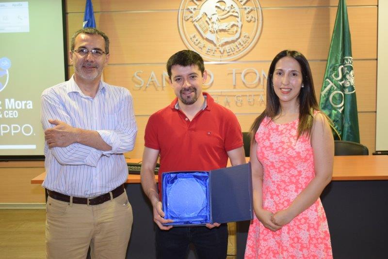 Ivan Paez recibe un reconocimiento de manos de Roberto Carrasco, DNA de Informática, y María de los Ángeles Horta, Directora de Ing. en Informática sede Rancagua.