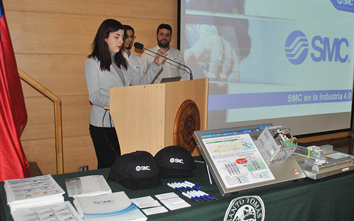 Como expositores de este seminario intervinieron dos representantes de la empresa multinacional SMC Corporation. Camilo Guiachetti, ingeniero relator del Área Capacitación, y Miguel Rojas, ingeniero del Área Didáctica, presentaron la charla titulada “SMC en la Industria 4.0”, referida a la también denominada “Cuarta Revolución Industrial”.