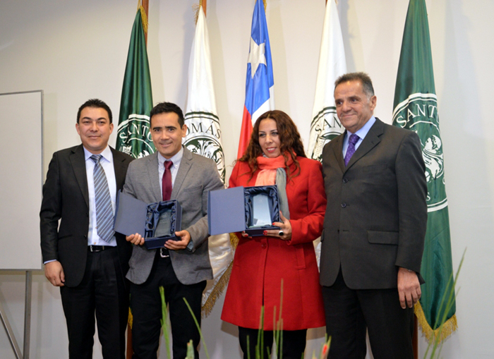 Durante la ceremonia se realizó además la entrega de un reconocimiento a dos colaboradores de Santo Tomás Ovalle, tanto por su trayectoria dentro de la institución, como por su compromiso y años de servicio. Este reconocimiento fue entregado a la secretaria de rectoría, Alejandra Jopia, por sus 10 años trabajando en la sede, y al director de Admisión y Comunicaciones, Mauricio Díaz, por sus 15 años de servicio.