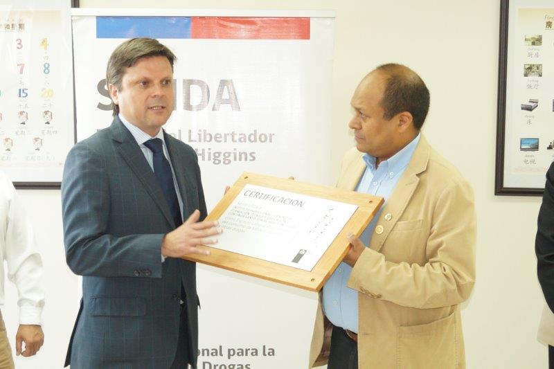 Manuel Olmos, Rector de Santo Tomás Rancagua, recibió la certificación en nivel avanzado de manos de Pablo Leiva, Director (s) de Senda O’Higgins, y Karen Fernández, Encargada Regional de Prevención. “El compromiso asumido hace tres años, hoy tiene sus frutos, así lo reflejan las cifras y eso nos pone muy contentos, pero la invitación es a no bajar la guardia, a seguir trabajando para trasformar este centro de estudios en un espacio laboral libre del consumo de sustancias”, declaró Leiva.