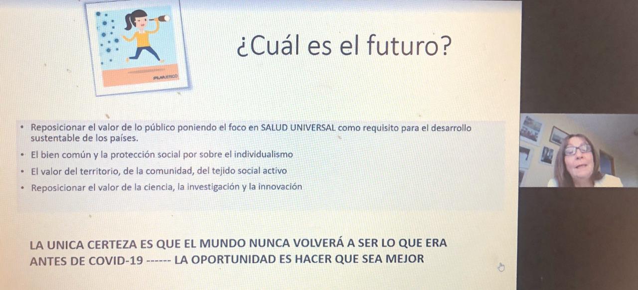 “Estamos en un contexto cambiante. En el mundo se están realizando muchos estudios científicos que podrían modificar la realidad que hoy conocemos respecto a la pandemia“, afirmó la Dra. Gisela Alarcón, decana de la Facultad de Salud de la UST, dando inicio a su exposición sobre sobre la “Realidad, proyecciones y desafíos para la salud” durante la pandemia Covid-19.