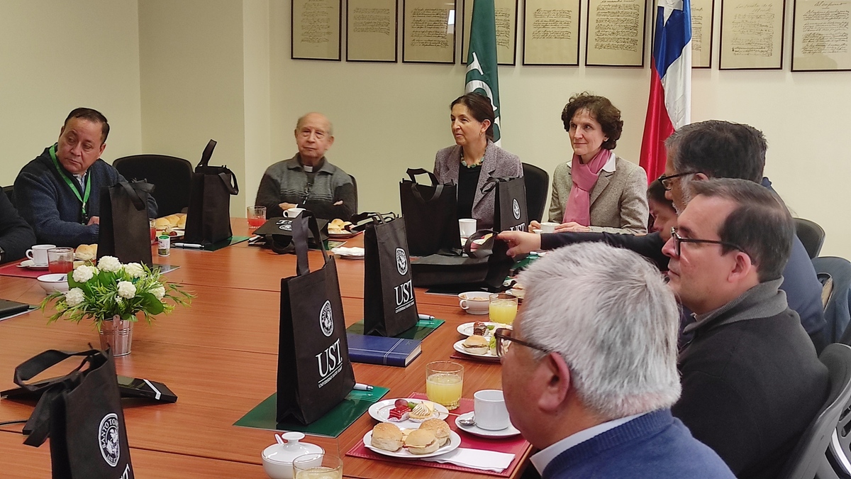 Posteriormente asistieron a un encuentro con la rectora Claudia Peirano, donde pudo conocer a los capellanes y parte de su labor diaria. Tras esto hubo un espacio de conversación entre los mismos capellanes, en el que pudieron compartir experiencias, dudas y desafíos respecto a la situación actual con la comunidad y especialmente con las y los estudiantes de Santo Tomás.