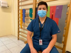 Brian Pinto Gutiérrez, estudiante de quinto año de la carrera de Kinesiología UST Los Ángeles, realiza su internado en el área de Neurología de la Clínica Kinésica donde además son atendidos pacientes con afecciones musculoesqueléticas.