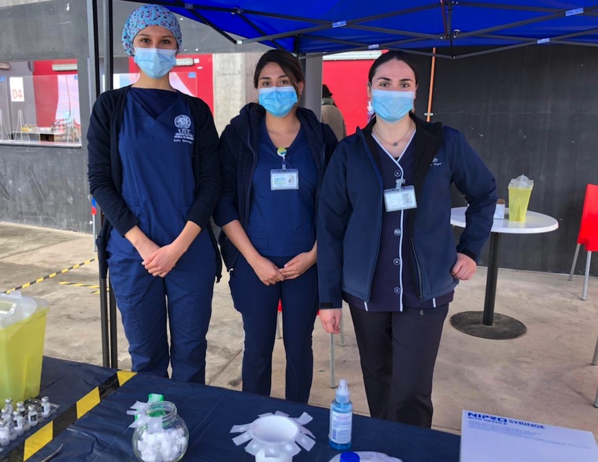 A solicitud de la Corporación de Salud Gabriel González Videla y SEREMI de Salud de la región de Coquimbo, desde el día 22 de marzo 2021 hasta el presente, un grupo de 32 internos de la Carrera Enfermería de Santo Tomás La Serena está colaborando en la vacunación por COVID 19 y anti-influenza, en diferentes puntos de vacunación: