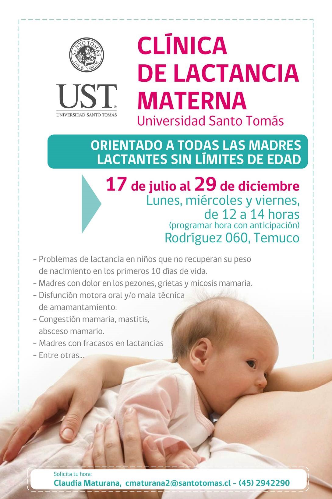 Valezka Martínez, miembro de la Comisión Regional de Lactancia Materna de la Seremi de Salud, región de La Araucanía, y jefa de la Carrera de Enfermería de la UST, señaló que “la clínica es de gran ayuda para las madres que vean en sus niños o en ellas problemas de lactancia”. La lactancia materna, destaca la profesional, es muy beneficiosa para los niños pues favorece su desarrollo inmunológico, el crecimiento físico e incluso el comportamiento afectivo y emocional, pues mientras un niño toma pecho no sólo satisface su sed y su hambre, sino que, al mismo tiempo, establece una relación de apego con su madre y alimenta su futura inteligencia.