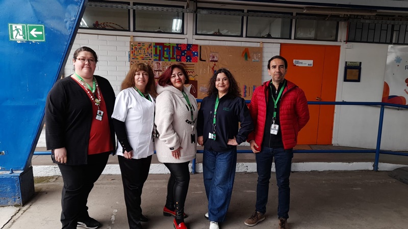 Michelle Salazar, Berlena Vaquero, Luisa Fernanda Vergara, Viviana Parada y Juan Francisco Cerda, académicos de Santo Tomás Puente Alto visitaron el CIMI para dar a conocer la Escuela de Emprendedores para personas en situación de discapacidad a los apoderados de la institución.