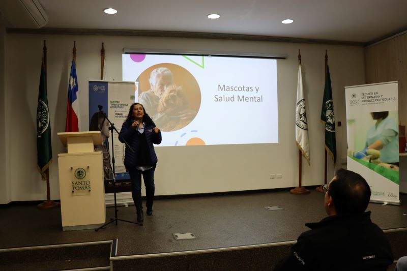 Por este motivo, la relación entre mascotas y bienestar emocional fue uno de los ejes centrales de la jornada. Carolina Molina, directora de las carreras del Área de Salud, explicó que el origen del nombre del proyecto responde precisamente al acompañamiento en la vejez.