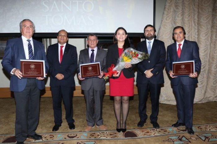 Moisés Saravia junto al rector de Santo Tomás Rancagua, Manuel Olmos; don Miguel Basso, la enfermera Paula Núñez; el Director Nacional del Área Ingeniería de Santo Tomás, Ignacio Contreras Espic y Armando Olavarría.