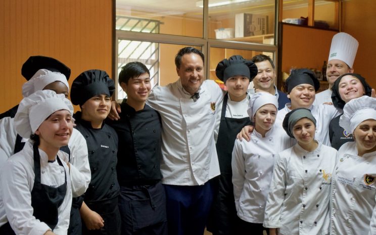 El lanzamiento se realizó hoy en el Liceo Comercial Miramar, con la presencia del alcalde de Puerto Montt, Rodrigo Wainraihgt, el gerente de Asuntos Públicos de SalmonChile, Tomás Monge, y el director del área de Gastronomía del CFT Santo Tomás, Frédéric Emery.