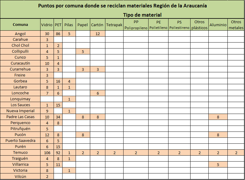 De estos seis los que se generan en los hogares son principalmente las pilas y embalajes (botellas plásticas, papeles, cartones, tetra pak, latas, vidrios etc.) En nuestra región existen numerosos puntos de acopio de envases y embalajes (ver tabla), los que pueden ser utilizados por todos nosotros si es que realizamos el esfuerzo de separar y llevar a dichos puntos los residuos en vez de desecharlos como basura.
