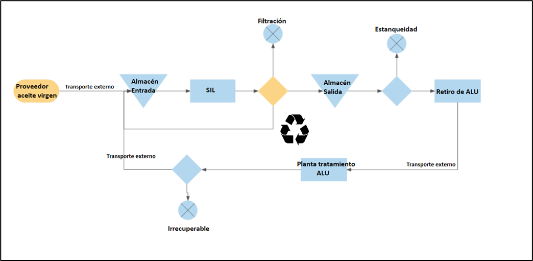 La gestión de la cadena de suministros de aceites lubricantes para motores en Chile es un problema tanto de la industria como para el gobierno lo que justifica programas de I+D+i con fondos de producción limpia (Ley N° 20.920, 2017) que aportan privados e instituciones públicas. Esta iniciativa legal, fijará metas anuales de recuperación de aceites lubricantes, artículos eléctricos y electrónicos, envases y embalajes, pilas, baterías y neumáticos una vez que terminan su vida útil. El objetivo es incrementar las tasas de reciclaje del país de un 10% a más de un 30% (MMA, 2016).