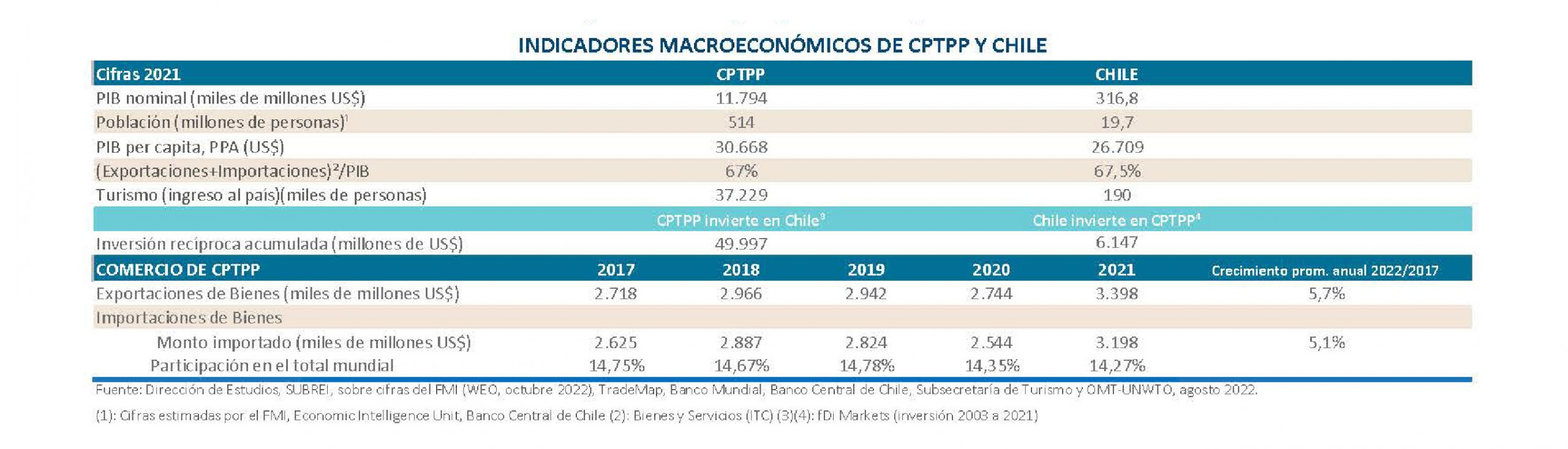 • Chile es el único país del CPTPP que cuenta con acuerdos comerciales con el resto de los 10 países que lo integran.