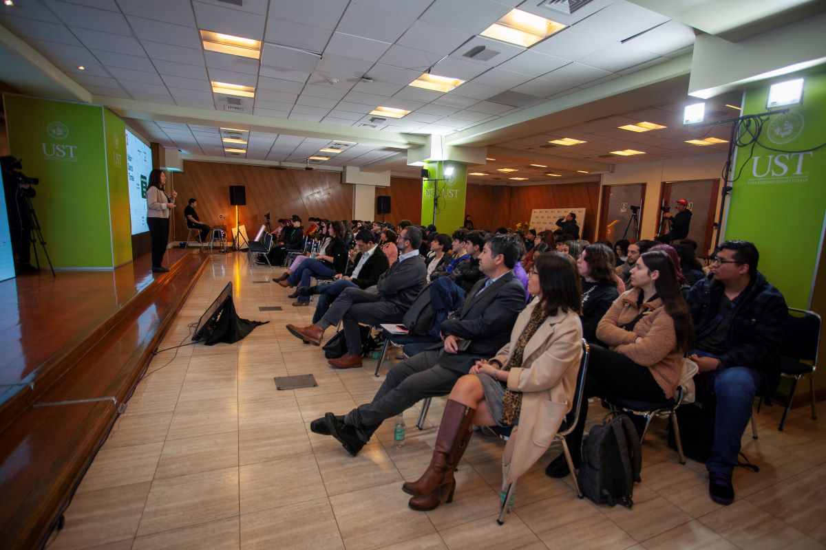La rectora nacional de la Universidad Santo Tomás, Claudia Peirano, dio inicio a la jornada con palabras de bienvenida para los participantes que se unieron tanto presencialmente como vía streaming. En su discurso, destacó la importancia del emprendimiento como motor de cambio en la sociedad y el valor de aprender de los fracasos para volver a emprender.