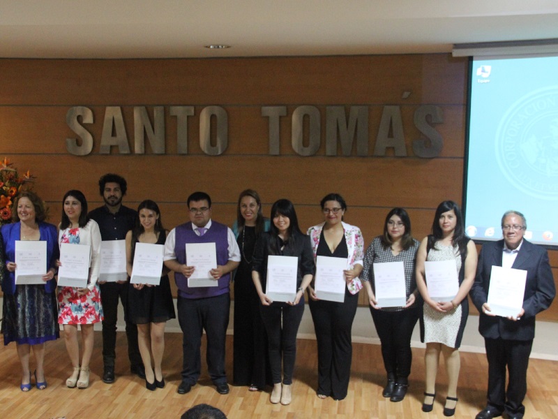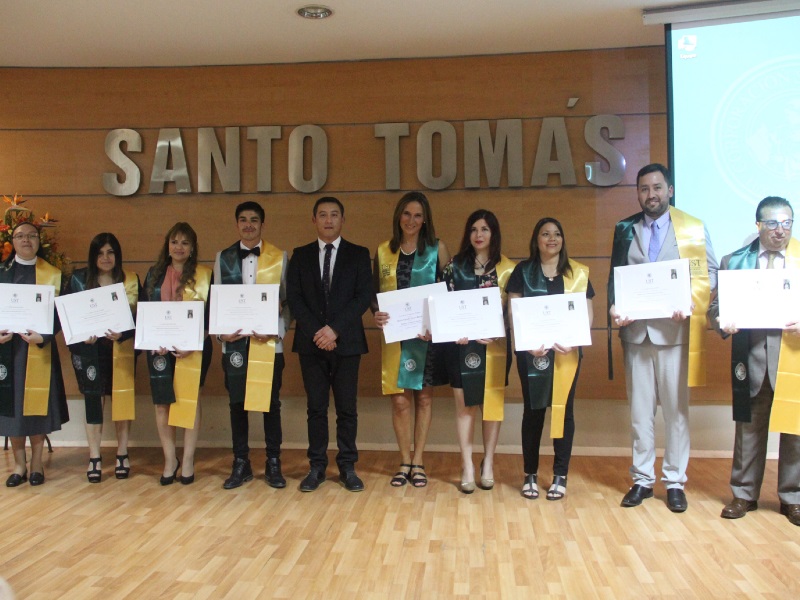 Con la presencia de la Directora Académica, Señora Adriana Ledezma Ledezma, la Coordinadora de Investigación y Postgrado Doctora Vilma Gómez Calle, el Director del Magíster en Educación con Mención en Diseño Curricular Basado en Competencias y Director del Magíster en Educación Mención Gestión Directiva Escolar Sr. Alexis Araya Cortés, la Directora del Centro de Aprendizaje Instituciones Santo Tomás y Coordinadora del Magíster en Pedagogía en Educación Superior y del Diplomado en Pedagogía en Educación Superior Sra. Claudia Jara Reyes, y la Directora del Diplomado en Biología Molecular para la aplicación en el Laboratorio clínico Sra. María Ester Aliaga López, se desarrolló la ceremonia de entrega de certificados de los participantes en los distintos postgrados, los cuales fueron: