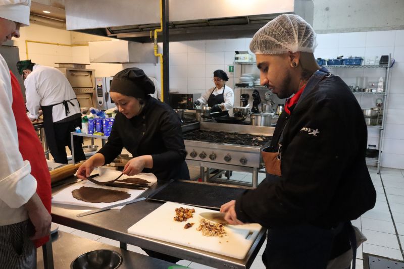La jornada concluyó con un espacio práctico en el taller de cocina de la sede, donde los egresados participaron de un taller de chocolatería y pastelería de vitrina impartido por la docente y chef Luisa Araya, quien entrego nuevos conocimientos prácticos a los cocineros, fortaleciendo así sus herramientas para el emprendimiento y el desarrollo profesional.