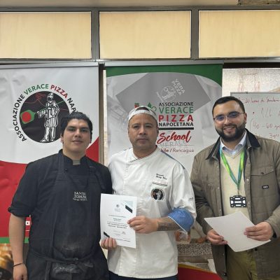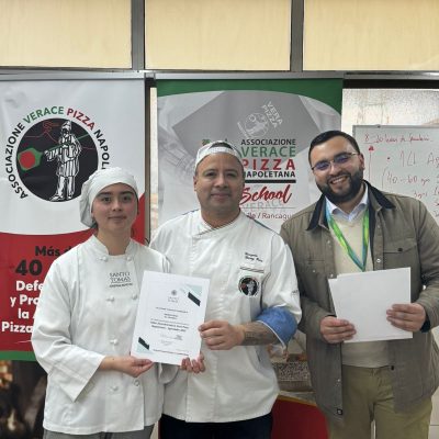 En esta oportunidad, una treintena de titulados de la carrera Gastronomía Internacional y Tradicional Chilena fueron parte de un taller donde descubrieron los secretos de la «vera pizza napoletana» de la mano de Gonzalo Garay Varo, embajador de Verace Pizza.