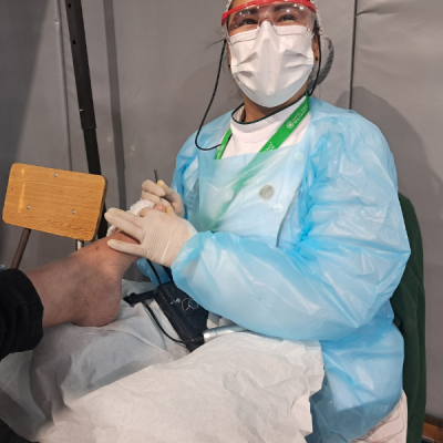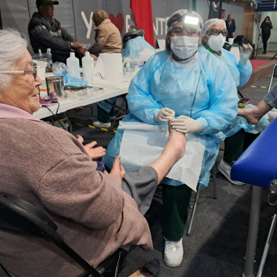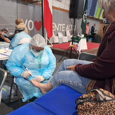 «Estamos en un procedimiento podológico junto a las alumnas de primero y segundo año de la carrera, atendiendo adultos mayores, que es parte de los usuarios a quienes estamos orientadas como carrera», explicó la docente de Técnico en Podología Clínica Lorena Romero.