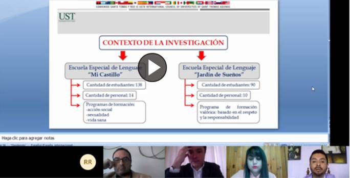 La primera defensa de la jornada de la mañana fue del tema de investigación: SIGNIFICADOS DE PROFESORAS DE EDUCACIÓN DIFERENCIAL, SOBRE LA DIVERSIFICACIÓN DE LA ENSEÑANZA, EN DOS ESCUELAS ESPECIALES DE LENGUAJE DE LA CIUDAD DE LA SERENA, de los candidatos MASSIEL DENISSE LEITON SERRANO y DIEGO ANTONIO SANTELICES CARMONA, Profesor Guía: Dr. © Claudio Rojas Tolmo. Calificación Máxima: excelente. Ambos egresados de educación diferencial UST sede La Serena, la comisión evaluadora fue Director tesis y programa Claudio Rojas Tolmo, Profesor informante Ronnie Videla Reyes y Coordinador programa profesor Maximiliano Troncoso.