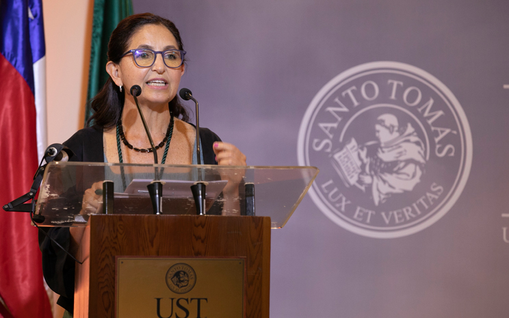 Luego, realizó su intervención la Rectora Nacional UST en el período 2019-2023, María Olivia Recart Herrera, quien hizo un breve repaso por los años que encabezó la Universidad Santo Tomás, recordando que a muchas de las personas las conoció a través de pantallas al enfrentar el encierro preventivo durante la pandemia.