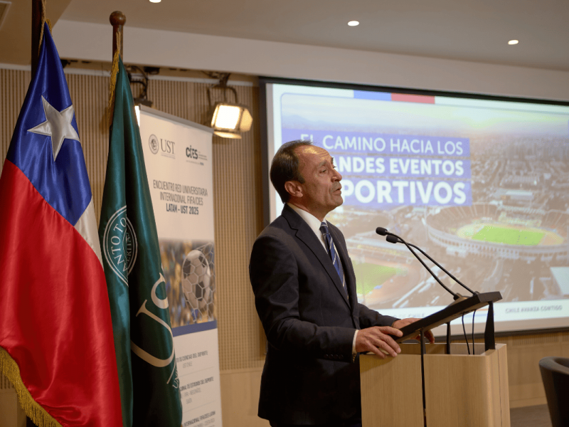La primera actividad incluyó el seminario internacional “Grandes eventos deportivos e imagen país”, realizado en el Aula Magna de Casa Central UST Santiago, que contó con la exposición del Ministro del Deporte, Jaime Pizarro, quien presentó la charla “El camino hacia los grandes eventos deportivos”. En su intervención, destacó el valor de este tipo de iniciativas universitarias: