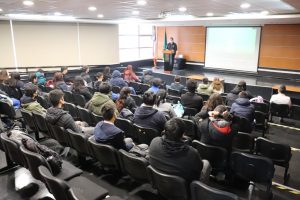 El bus con 37 alumnos y dos profesores arribó a eso del medio día a nuestra sede. La delegación del Colegio San Patricio comenzó su jornada con la bienvenida por parte de las autoridades de Santo Tomás Los Ángeles, en el Aula Magna la sede.