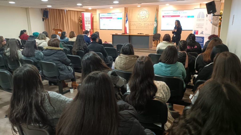 Es por eso que estudiantes de las carreras de Técnico en Enfermería y Técnico en Podología Clínica de Santo Tomás Rancagua participaron de un seminario enfocado en Tuberculosis y VIH. Las relatoras fueron las profesionales de la Seremi de Salud: Macarena Canales, matrona perteneciente al programa de VIH sida y enfermedades de transmisión sexual; y María Fernanda Berríos, epidemiología.