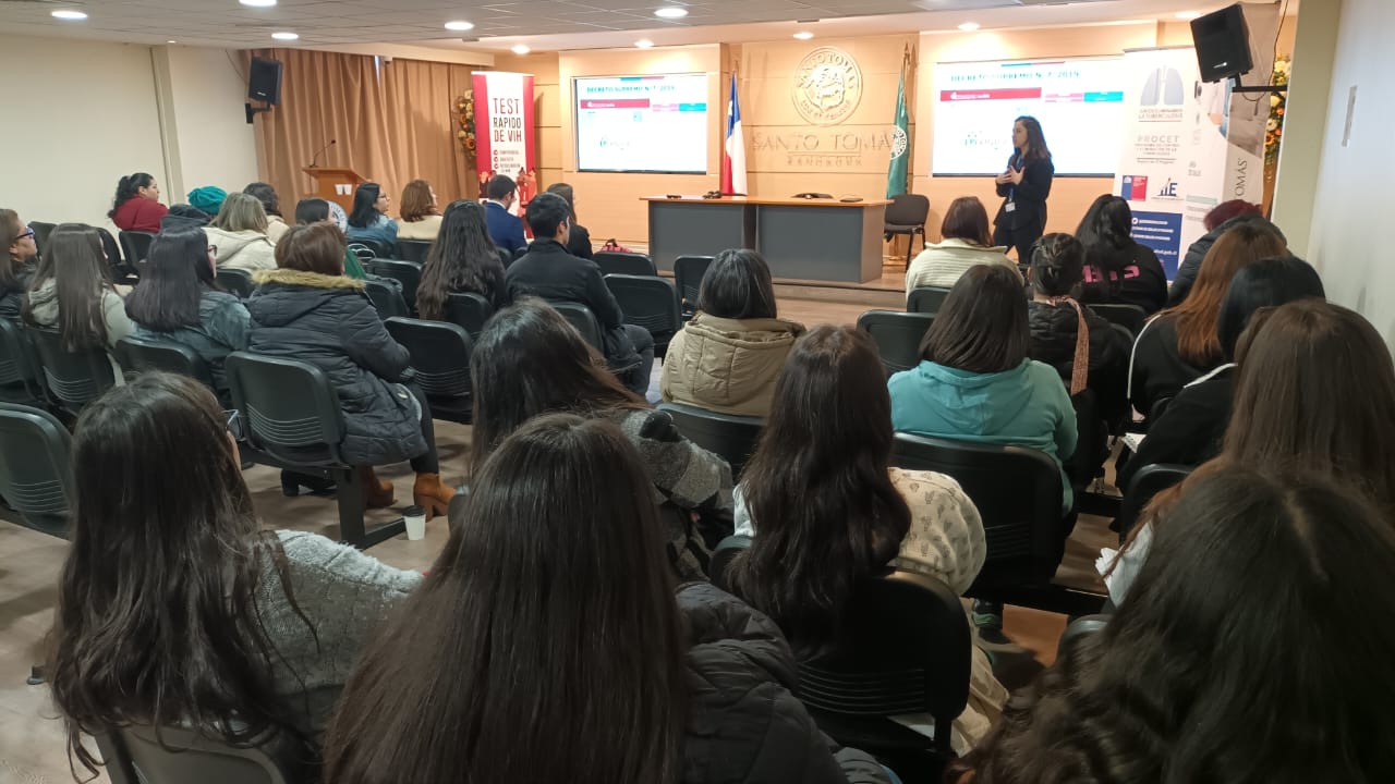 Es por eso que estudiantes de las carreras de Técnico en Enfermería y Técnico en Podología Clínica de Santo Tomás Rancagua participaron de un seminario enfocado en Tuberculosis y VIH. Las relatoras fueron las profesionales de la Seremi de Salud: Macarena Canales, matrona perteneciente al programa de VIH sida y enfermedades de transmisión sexual; y María Fernanda Berríos, epidemiología.