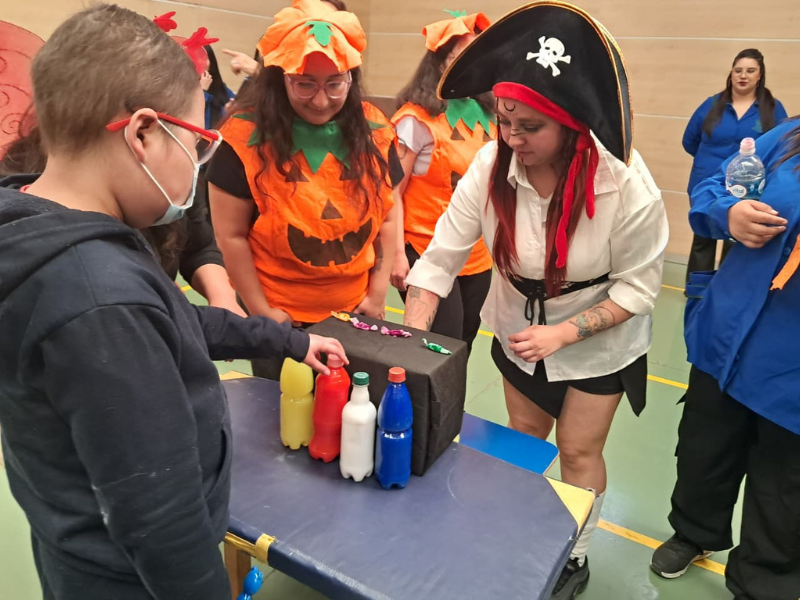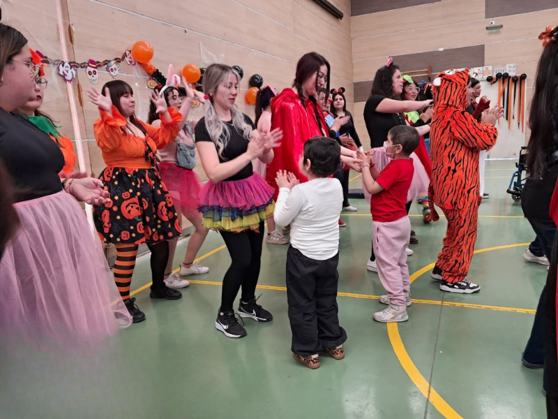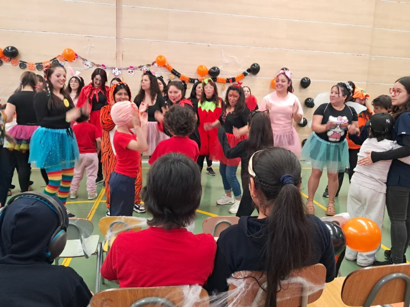 Invitadas por la Dirección de Asuntos Estudiantiles (DAE), las estudiantes de primer año de Técnico en Educación Parvularia 1° y 2° básico, desarrollaron el tradicional Halloween Solidario; una jornada llena de entusiasmo, que combinó dinámicas, bailes, concursos y pintacaritas, con las y los estudiantes del Colegio Hospitalario Sótero del Río.