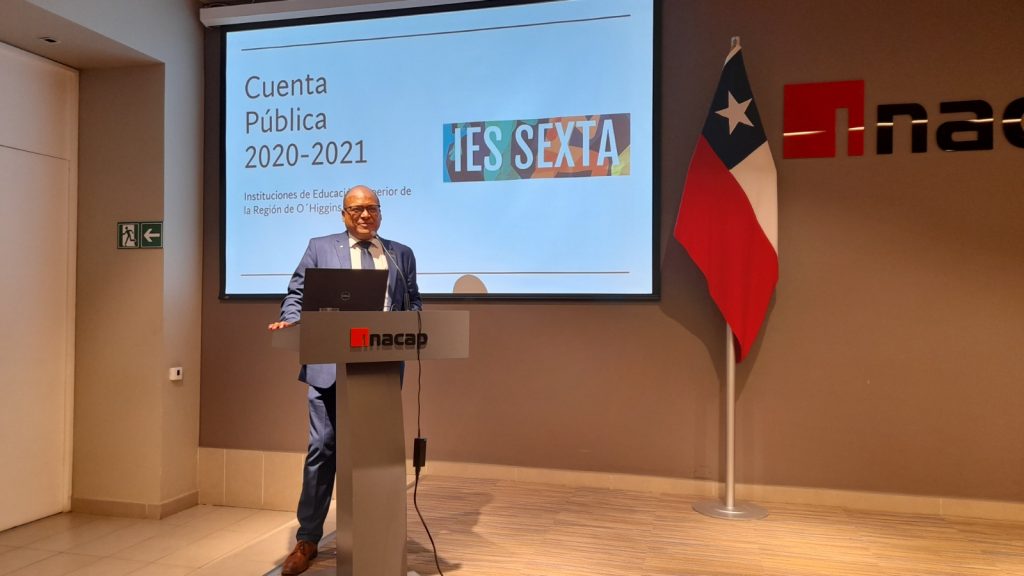 “Nuestra fortaleza está en nuestras diferencias”, fue el mensaje que destacó Manuel Olmos al finalizar la cuenta de su gestión 2020-2022 al mando de IES Sexta. La nueva directiva será presidida por el Vicerrector en INACAP Rancagua, Angelo Palazzi Lander, y lo acompañarán el director de la Universidad de Aconcagua sede Rancagua, Marcelo Salvo Meneses, y el Rector del CFT Estatal de O’Higgins, Octaviano Torres Muñoz.