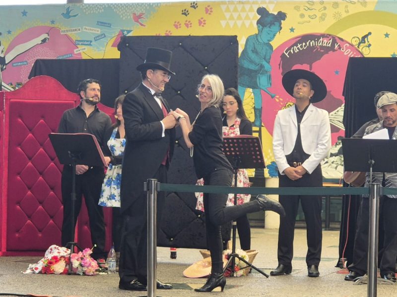 En el marco de la Celebración de Fiestas Patrias, la Universidad Santo Tomás, sede Santiago, invitó a toda su comunidad a presenciar el teatro musical “La Pérgola de las Flores”, una entrañable historia que narra las aventuras de Carmela, una joven que viaja desde San Rosendo a Santiago para descubrir el mundo de las floristas en la tradicional pérgola.