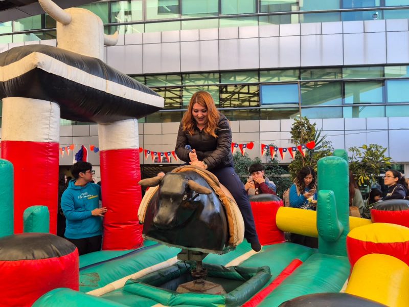 Por otro lado, los días martes 9 y miércoles 10 de septiembre, los estudiantes de la UST, sede Santiago tuvieron su propia celebración, en la que pudieron disfrutar de empanadas, un toro mecánico, música en vivo y un campeonato de cueca que convocó a toda la universidad. Esta instancia fue inaugurada por la rectora, Dra. Elsa Echeverría, quien además aprovechó de enviar un mensaje a los estudiantes: “Disfruten, celebren nuestras tradiciones y compartan con alegría, pero siempre con cuidado y responsabilidad”.