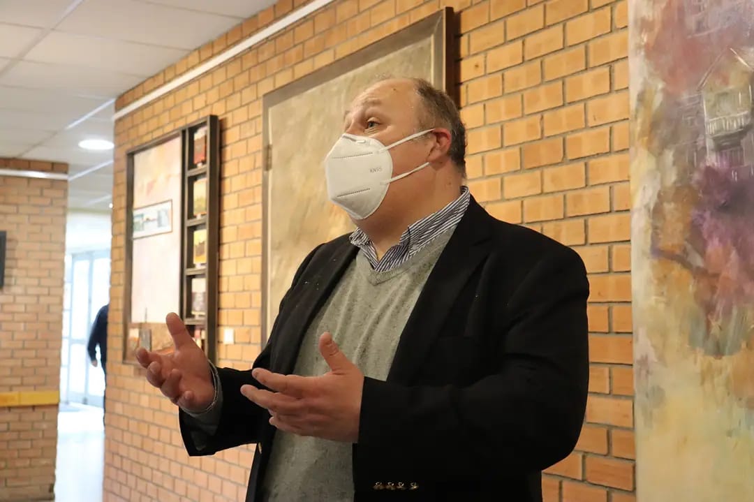El autor compartió con estudiantes explicándoles la importancia que tiene el relieve y la textura en su propuesta. Del mismo modo, señaló que su objetivo es mostrar en diferentes etapas el sur de Chile, desde la octava región, en base a técnicas en acrílico, óleo, técnica mixta, retablos y telas.