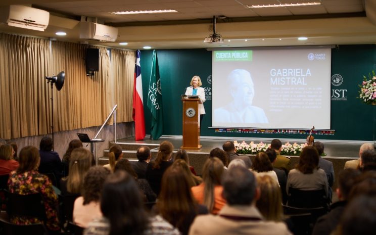 Entre los temas que la rectora abordó en la Cuenta Pública destacó la presencia, tanto nacional como regional de Santo Tomás. En la Región de La Araucanía, esta presencia se materializa a través de la sede Santo Tomás Temuco, donde la comunidad estudiantil accede a una experiencia integral de aprendizaje en espacios como las sedes Rodríguez y Pedro de Valdivia, Centro Demostrativo de Recursos Naturales, Centro de Atención Psicológica (CAPS), Clínica Jurídica, el Hospital Clínico Veterinario y Casa de la Familia en Padre Las Casas.