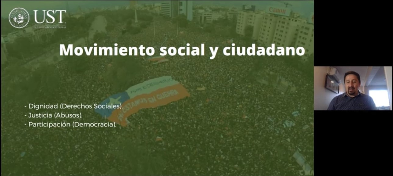 El jueves 25 de noviembre se realizó el webinar “Participación Ciudadana y Responsabilidad Social, desde el Proceso Constituyente”, con la participación de Ítalo Gallegos Pulido, profesor, Magister en Ciencias de la Educación, Política y Gestión Educacional. El profesional describió y analizó las causas y consecuencias del reciente movimiento social y ciudadano en Chile.