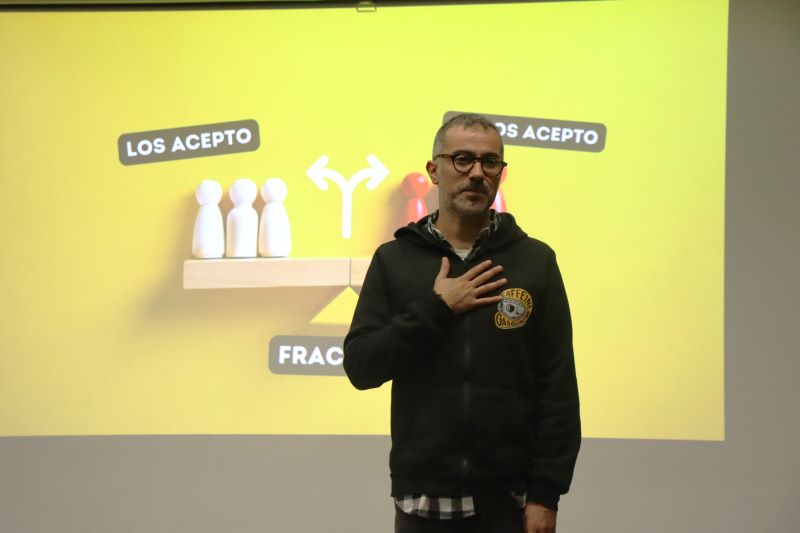 El psicólogo Francisco Videla Cáceres, profesional titulado de la Universidad Santo Tomás y cofundador de la consultora FracasoLab, fue el encargado de conducir la jornada con una propuesta provocadora: tensionar la idea tradicional del éxito y abrir el diálogo sobre el fracaso como una experiencia válida, inevitable y transformadora.