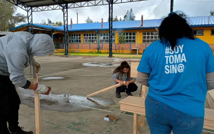 La Escuela San Francisco de Asís de Llahuén operó como centro logístico y de trabajo colectivo. Desde allí se desplegaron cuadrillas equipadas con herramientas, materiales y planificación detallada. En pocos días, se levantaron muros, se adecuaron techumbres, se dividieron habitaciones y se habilitaron espacios más seguros para la vida familiar.